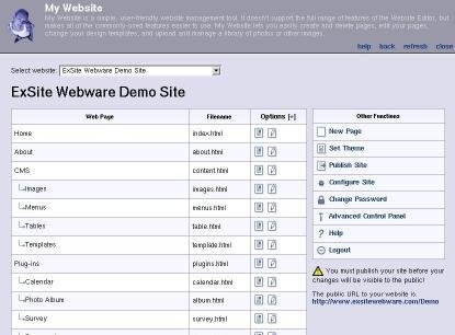 ExSite is a Website Operating System - a complete website management system that includes user-friendly, browser-based tools for web authoring, content management, publishing, database administration, user management, dynamic content serving, and more.