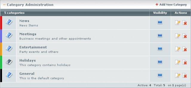 ExtCalendar is a powerful multi-user web-based calendar application. Features include Multi-Languages, Themes, Recurrent Events, Categories, Users and Groups management, Environment and General Settings, Template Configuration, Product Updates.