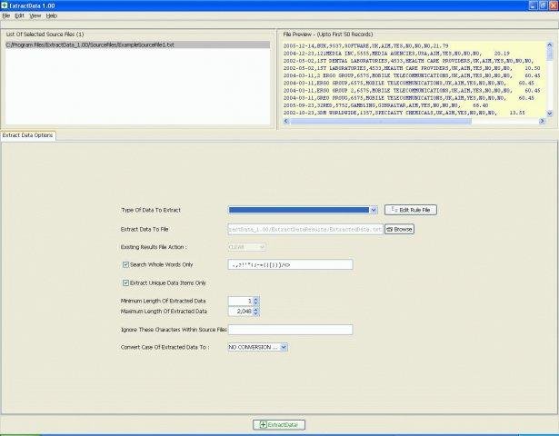 ExtractData is a program which scans your files, looking for specific types of data to isolate and extract. Extract lists of email addresses, person names, addresses and other kinds of data types from multiple files in a single pass.
