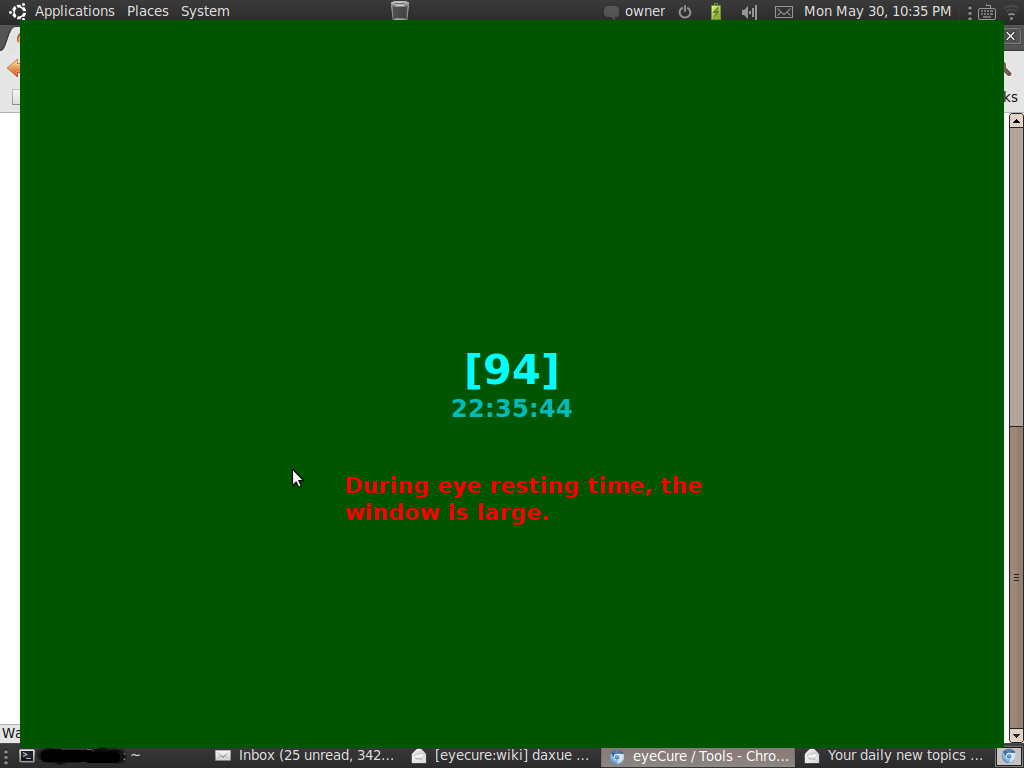 - Regularly pop up big eye resting windows covering screen forcing you take rest