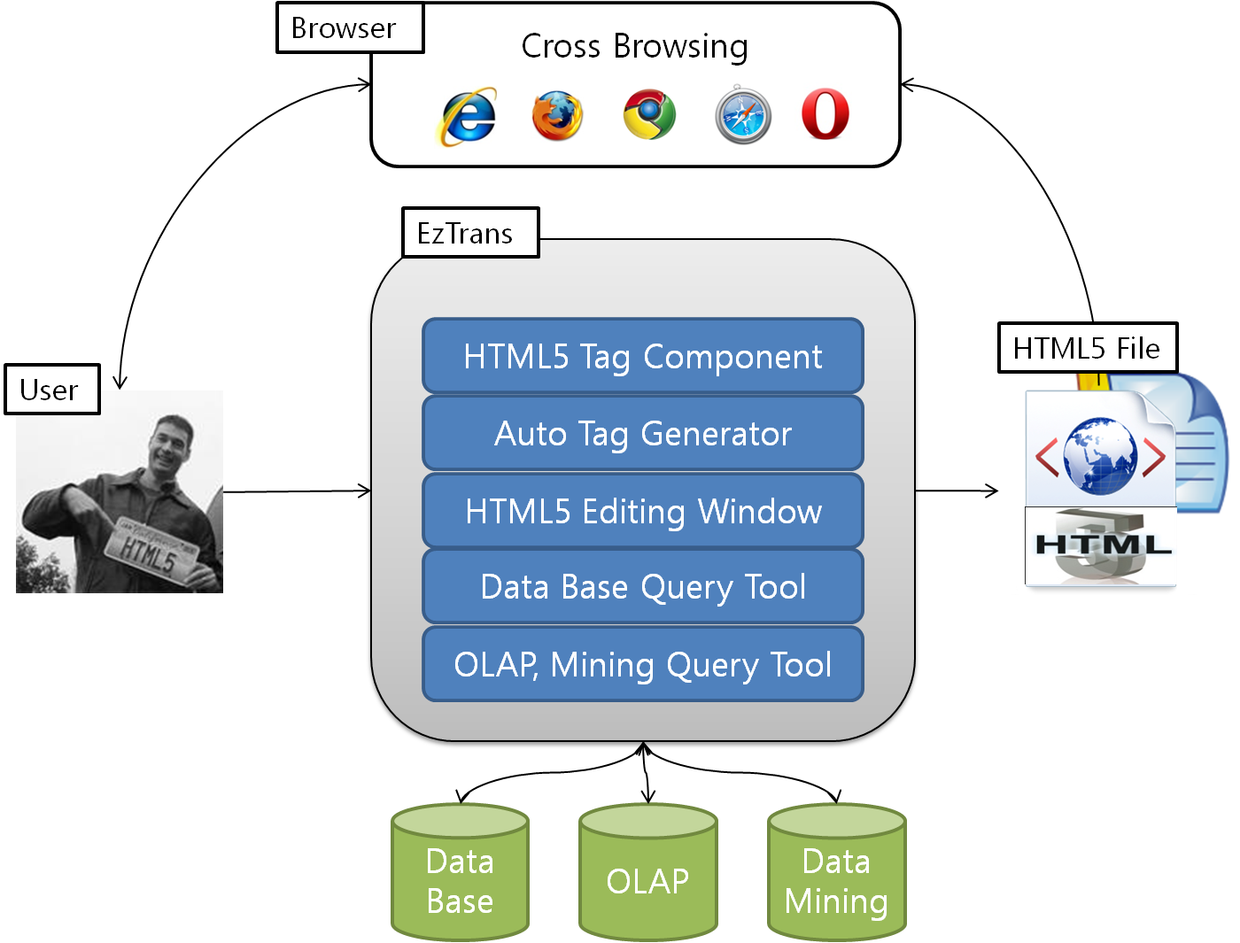 EzTrans is Java-based GUI tool for HTML5 authoring