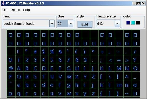 F2IBuilder, is a generator of bitmap fonts, opensource and multiplatform, developed in Java language, according to the GPL. F2IBuilder, é um gerador de fontes bitmap, opensource e multiplataforma, desenvolvido em linguagem java, de acordo com a lice