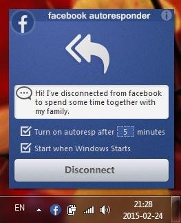 Facebook Autoresponder is a software that allows you to easily setup your own auto reply message for Facebook chat. This is a Windows desktop application that end users are able to automatically sends a reply when someone contacts you. With the Facebook Autoresponder, you can easily take a break from social network without worrying about friends getting angry when not answering on Facebook while you're busy with something else. It's extremely simple in use, fast and so good looking. Enjoy!