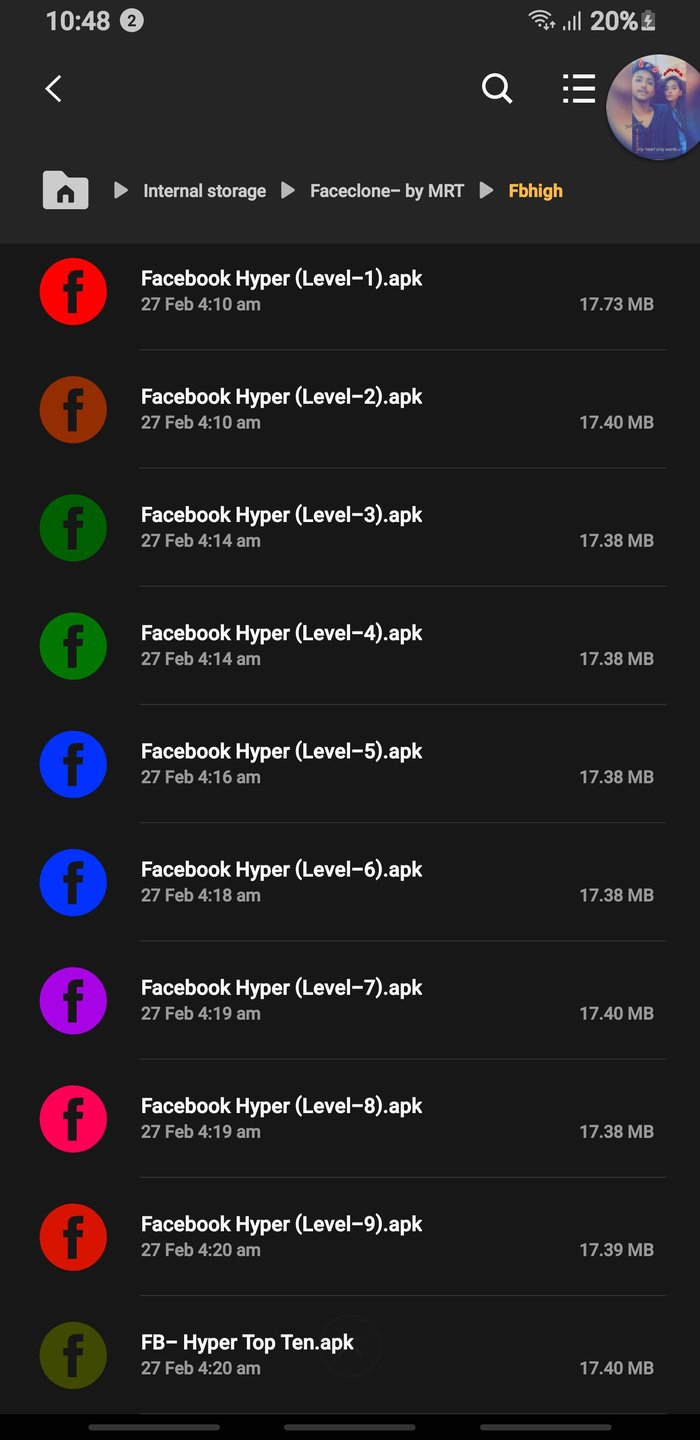 Title: Faceclone Created by: Mahir Rahman Thinian Founder & Ceo: MRT GROUP Supported Devices: Android Total Clone: 50 apk File...... Date: 1 March 2021...........