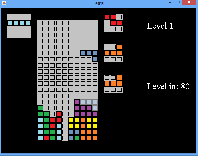 A opens source Tetris clone created in Java with the in-built library graphics2d.