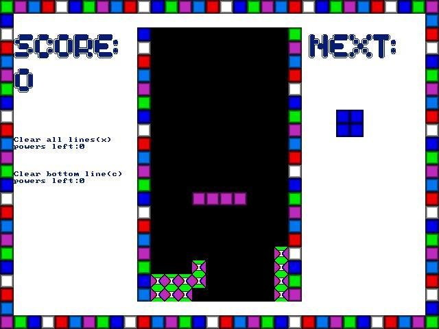 So this is my first game (using allegro library), therefor it's a tetris clone. It has all the basics like sounds (wach your ears), high score, increasing speed etc. As a little bonus it also has two "powers".
