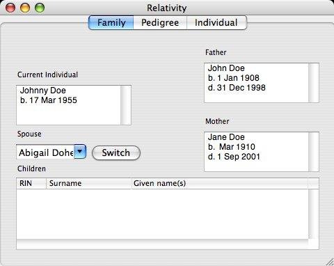 Relativity is a free genealogical database program for Mac OS X.