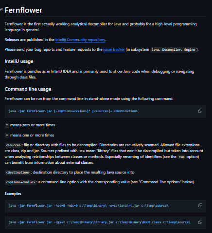 - Decompiles Java bytecode to readable source