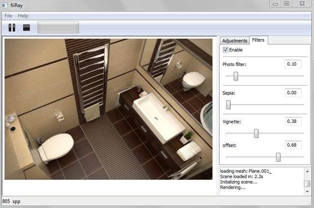 fiiRay is open-source physically based 3D renderer that can be used to create photorealistic images. Python script add-on for Blender 2.50 can be used to export scenes for fiiRay. fiiRay is still in development and current version is not stable.