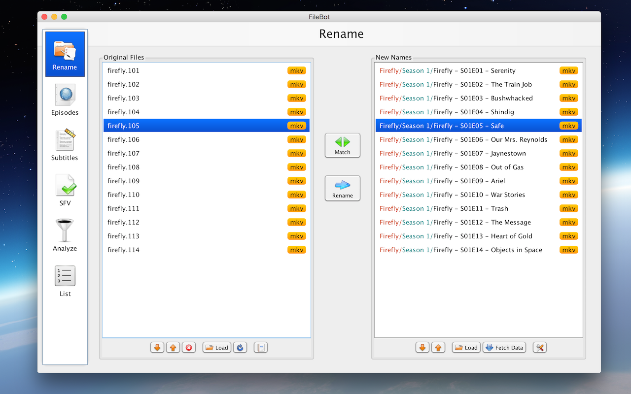 FileBot is the ultimate tool for renaming your movies, tv shows or anime and downloading subtitles. It's smart, streamlined for simplicity and just works. FileBot supports Windows, Linux and Mac, plus there's a full-featured command-line interface for all sorts of automation.