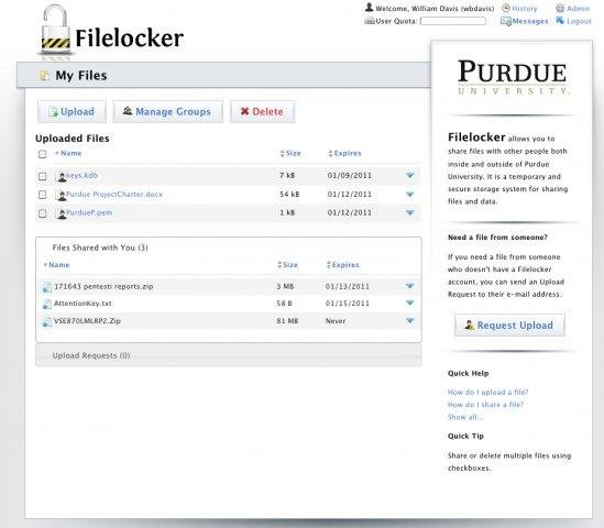 Filelocker is a web based secure file sharing application which facilitates easy file sharing between users at an organization and promotes secure data sharing habits.