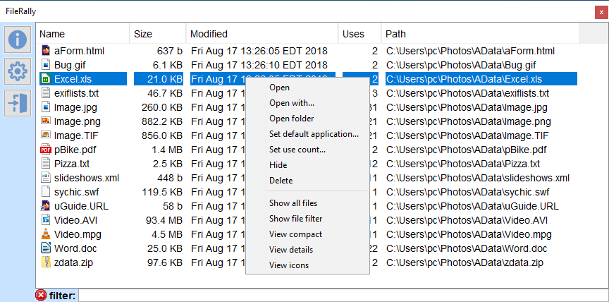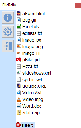 FileRally is a launcher or dock for files. FileRally displays an always up-to-date virtual folder containing your most frequently used and most recently used files.