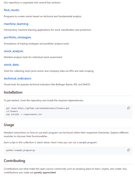 Finance is a repository that compiles structured notes and educational material related to financial analysis, markets, and quantitative finance concepts. The project focuses on explaining key principles used in finance and investment analysis, including topics such as financial statements, valuation models, portfolio theory, and financial markets. The repository is designed as a study reference for students and professionals who want to understand financial systems and the analytical frameworks used in financial decision-making. It organizes concepts into structured documents that explain both theoretical principles and practical calculations used in finance. The materials often include definitions, formulas, conceptual explanations, and examples to help readers understand how financial models and instruments function in real markets.