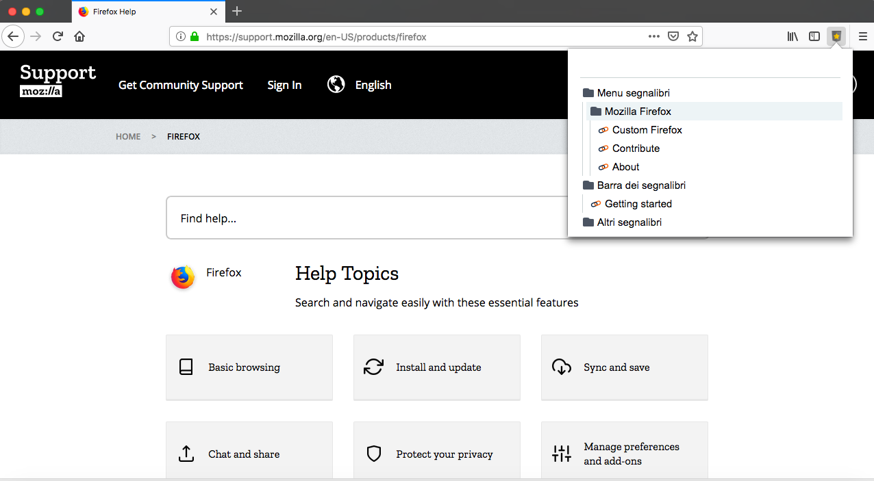 - Context menu for editing, deleting and adding bookmarks and folders