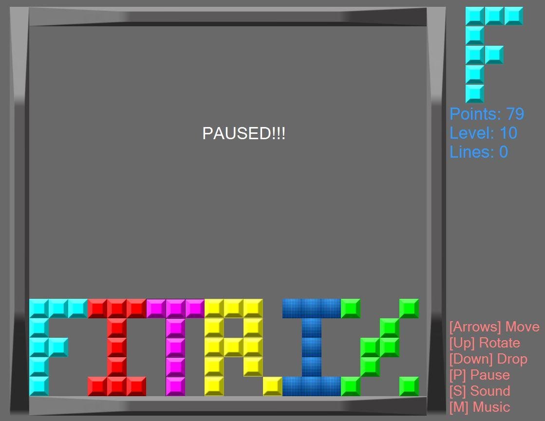 Fitris is a Tetris Clone made with VB.NET (framework 4.0). You can personalize blocks using custom colors and custom size. Also, you can include alphabet characters fall down in playing field.