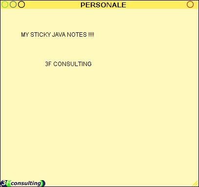 EN: Free Sticky Note in java 1.6+ for Desktop; I T: Free Note per il tuo Desktop compatibile con java 1.6+; 3F Java Notes is a free and open source program that will allow to place lots of sticky notes on your desktop so that you will never forget about