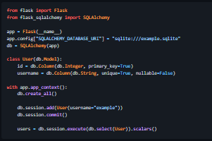 Flask-SQLAlchemy is an extension for Flask that adds support for SQLAlchemy to your application. It simplifies using SQLAlchemy with Flask by setting up common objects and patterns for using those objects, such as a session tied to each web request, models, and engines. Flask-SQLAlchemy does not change how SQLAlchemy works or is used. See the SQLAlchemy documentation to learn how to work with the ORM in depth. The documentation here will only cover setting up the extension, not how to use SQLAlchemy.