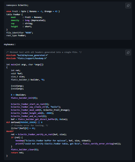 • Pre-generated reflection headers for handling .bfbs files