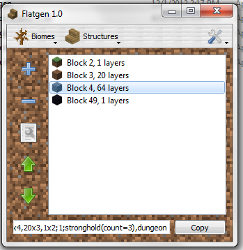 Flatgen is a graphical program for creating superflat Minecraft world presets in Windows or Linux.