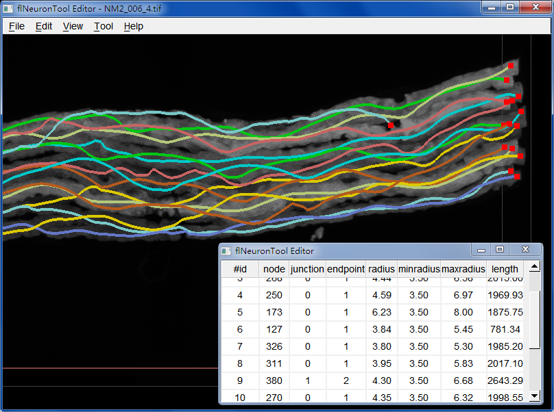 The flNeuronTool allows users to reconstruct and proofread neuronal morphologies in light microscopy images. The system incorporates automatic tracing and manual editing of neuron reconstruction into a cooperative 3D interactive visualization-assisted environment, which is a powerful tool for analysis of complex neuronal images.