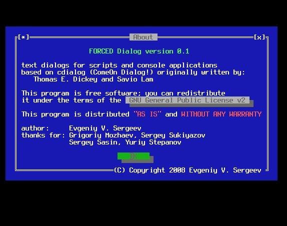 cdialog text-mode clon. Portable File Manager for Text-mode in near future (just another clon of Norton/Midnight Commander).