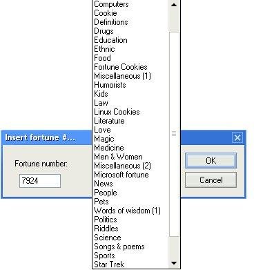 Fortune displays random text messages that are intended to be fun. It uses the original fortune-mod text database, but has a user-friendly interface. You can download versions for Dos, Windows, Linux and a Java-version for any OS.