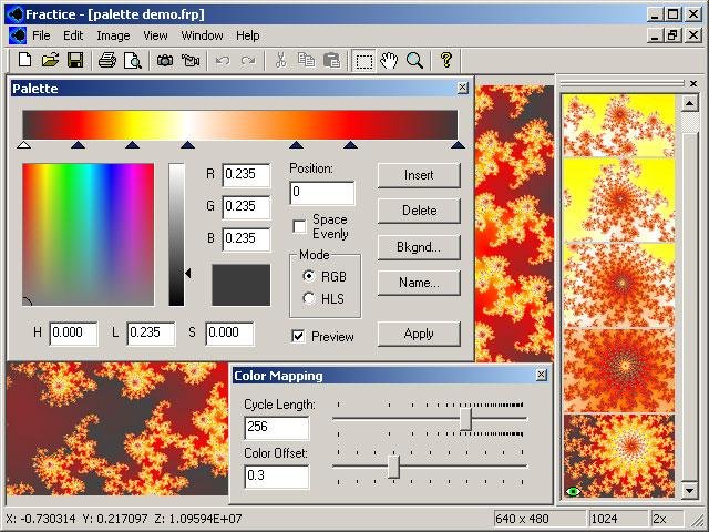 Fractice is a fractal explorer/renderer for Windows. It supports navigation, thumbnails, previews, deep zoom, printing, posters, palettes, multicore and distributed processing, movie recording, undo/redo, job control, VJ mixing, dual-monitor, & MIDI.
