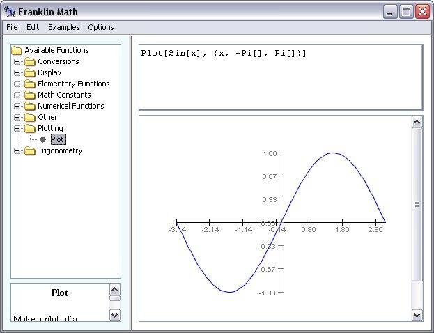 Franklin Math is an open source Java symbolic computer algebra system (CAS), with similarities to commercial math packages such as MATLAB or Mathematica. It allows numeric and symbolic calculations, with built-in functions including plotting commands.
