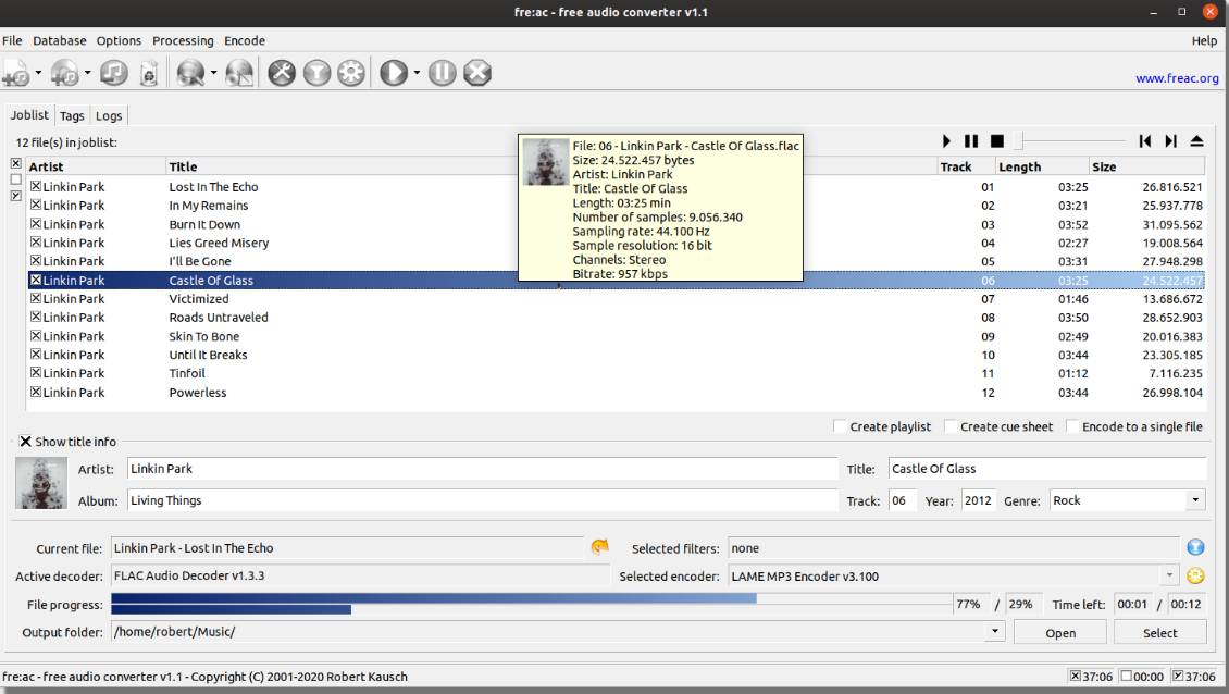 fre:ac is a free audio converter and CD ripper with support for various popular formats and encoders. It converts freely between MP3, M4A/AAC, FLAC, WMA, Opus, Ogg Vorbis, Speex, Monkey's Audio (APE), WavPack, WAV and other formats. With fre:ac you easily rip your audio CDs to MP3 or M4A files for use with your hardware player or convert files that do not play with other audio software. You can even convert whole music libraries retaining the folder and filename structure. The integrated CD ripper supports the CDDB/GNUdb online CD database. It will automatically query song information and write it to ID3v2 or other title information tags.