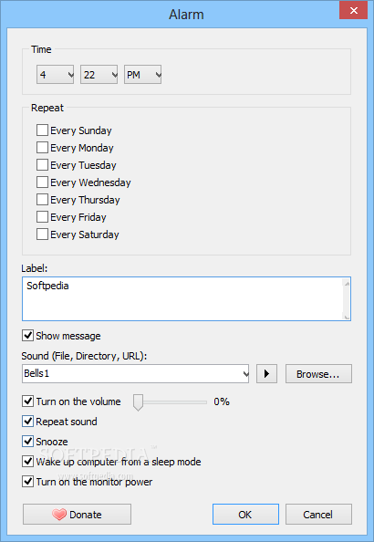 From Comfort Software: If you need alarm clock software for Windows, this is the software you are looking for. Free Alarm Clock supports unlimited number of alarms so that you are not restricted to the number of alarms you can have. Alarms that you set will sound even if computer goes to sleep. While your PC is sleeping and the time comes to activate your alarm, Free Alarm Clock will wake your PC up. The alarm clock can remind you about important events by playing your favorite music and showing a notification message. You can set alarm volume level to a comfortable level depending on the time of the day.