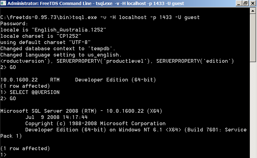 It offers ODBC support (unixODBC 2.3.4), Kerberos V (Heimdal) support, SSPI support and SSL encryption. SQSH tool.
