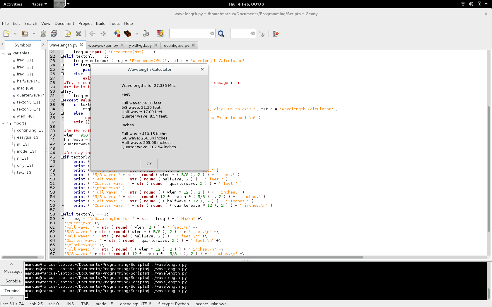 - Can calculate wavelengths either in the air, or in cable with a given velocity factor