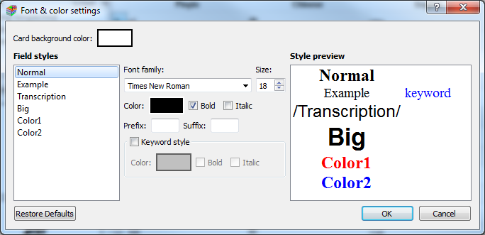 Fresh Memory is an application that helps to learn large amounts of any material with Spaced Repetition method. The most important subject is learning foreign words, but Fresh Memory can be also used to learn anything else. The learning data is stored as flash cards and dictionaries. The flash cards may have several fields, and the user controls what combination of fields to learn. The flashcards can have formatted text and images.