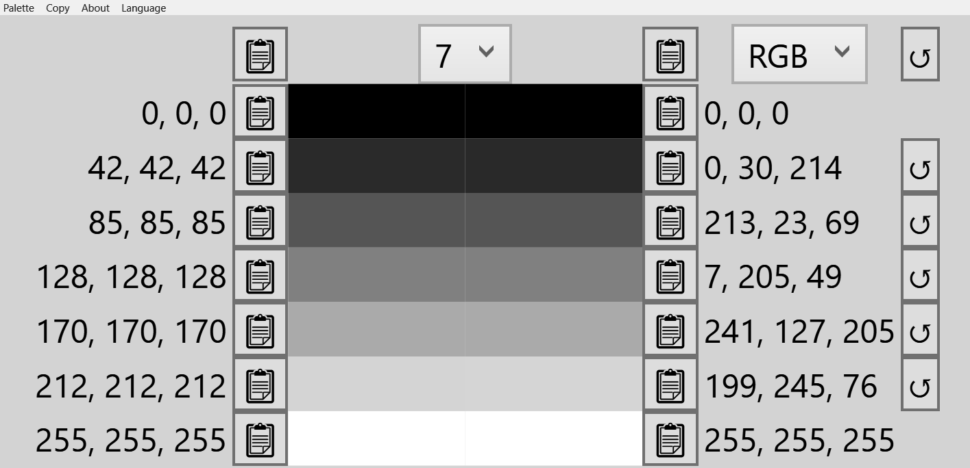 - Copy to clipboard: Copy palette color values to your clipboard for quick integration into your projects.