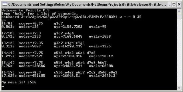 Frittle is an open source amateur Java Chess Engine that supports the XBoard/WinBoard Chess Engine Communication Protocol (version 2).