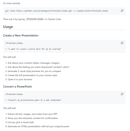 Frontend Slides is a lightweight tool that enables users to create visually appealing, animation-rich web presentations without requiring knowledge of CSS or JavaScript by leveraging a guided, interactive workflow. It operates on a “show, don’t tell” philosophy, generating visual previews of styles so users can select their preferred design rather than describing it abstractly. The system produces fully self-contained HTML presentations with inline CSS and JavaScript, eliminating the need for external dependencies, build tools, or frameworks. It also supports converting existing PowerPoint files into web-based presentations while preserving content such as images, text, and structure. The tool includes curated design presets that avoid generic AI-generated aesthetics, ensuring presentations feel distinctive and intentional. Its architecture uses progressive disclosure, loading only necessary components at each step to keep the workflow efficient and intuitive.