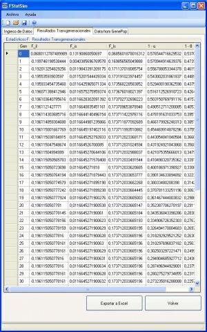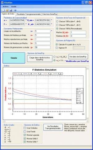 The software takes the initial gene correlations obtained as initial data, or from a Genepop file, and simulates the transgenerational transition of both the gene correlations and the fixation indices (Fls, Fil y Fis) for any number of generations.