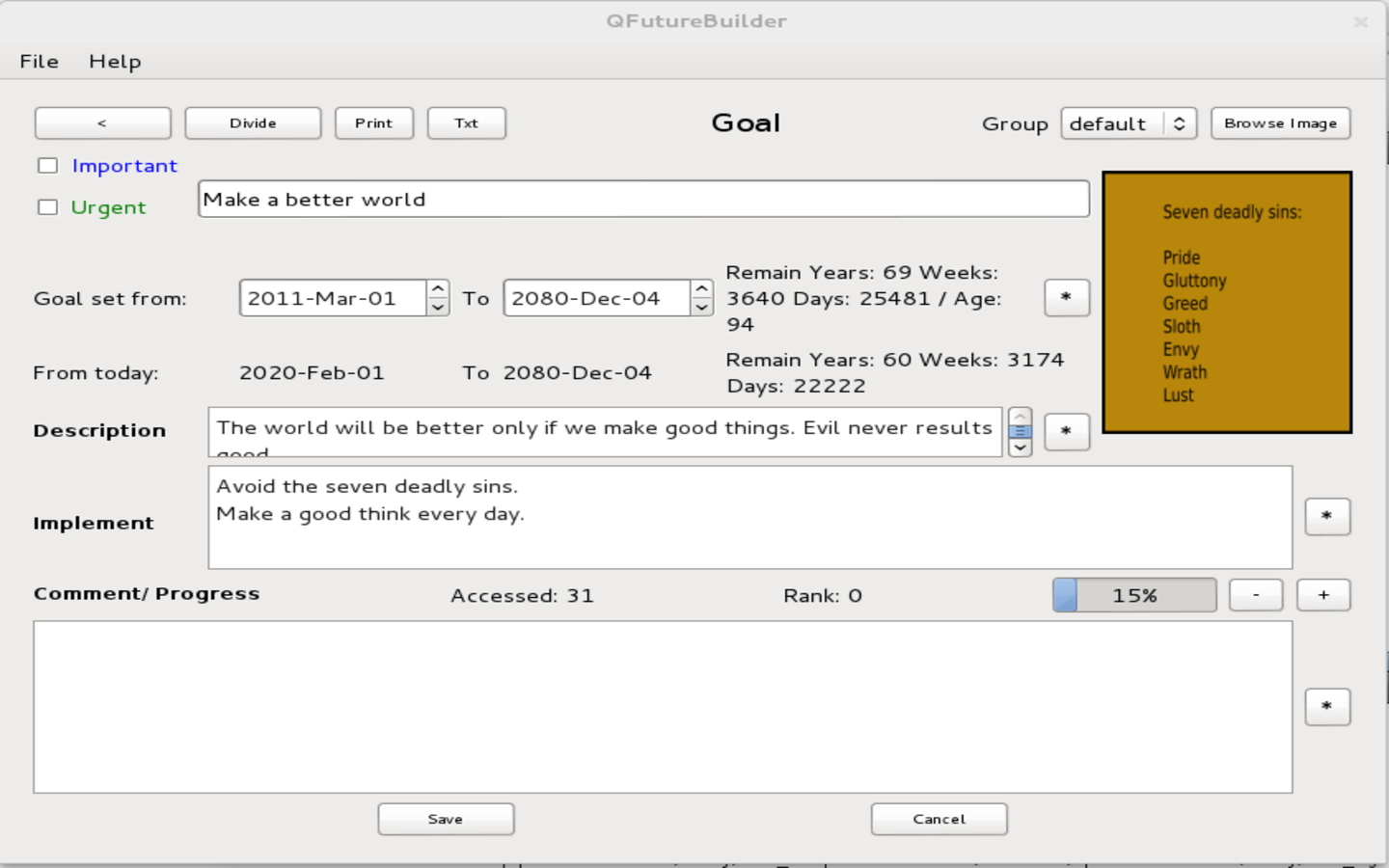 QFutureBuilder should offer lightweight, practical application, for set and track long time goals.