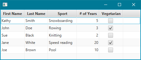If you miss the DefaultTableModel like-approach on the JavaFX platform, this library is for you!