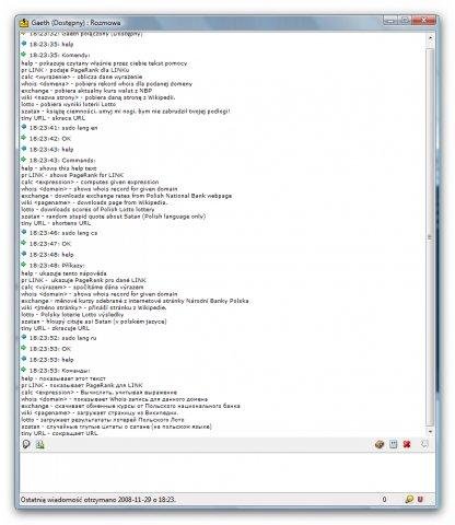 Gaeth is written in Perl Jabber bot for general usage (Google, exchange rates, fortunes, etc.) being developed Just For Fun™.