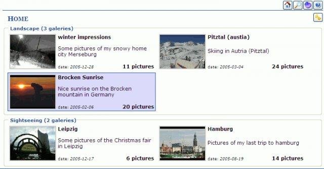 GaliX ist a free PHP Gallery, which can be fully configured to meet the users wishes. Includes many Features like Auto-Thumbnails, Download Protection, Picture Watermark, Search Engine, Comment Functions, Statistic Page, Admin Menu, Auto-Update.