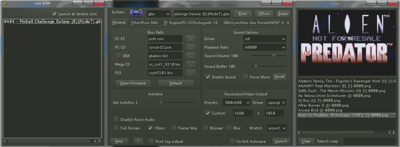GambNafen is a frontend (GUI) for Mednafen 0.9.18 WIP multi emulator (and upper series), written in Gambas.