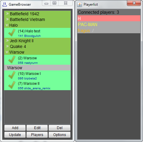 In the player list you can quickly see who is online, and who is a bot (bots are marked red).