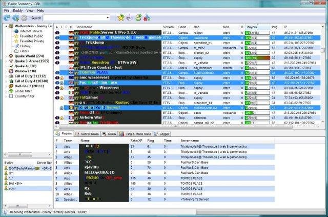 Software that will keep track of your favorite internet game servers such as Quake 3 &4, Enemy Territory, Call of Duty, Counter Strike & Warsow etc. Supports filtering and country locations...