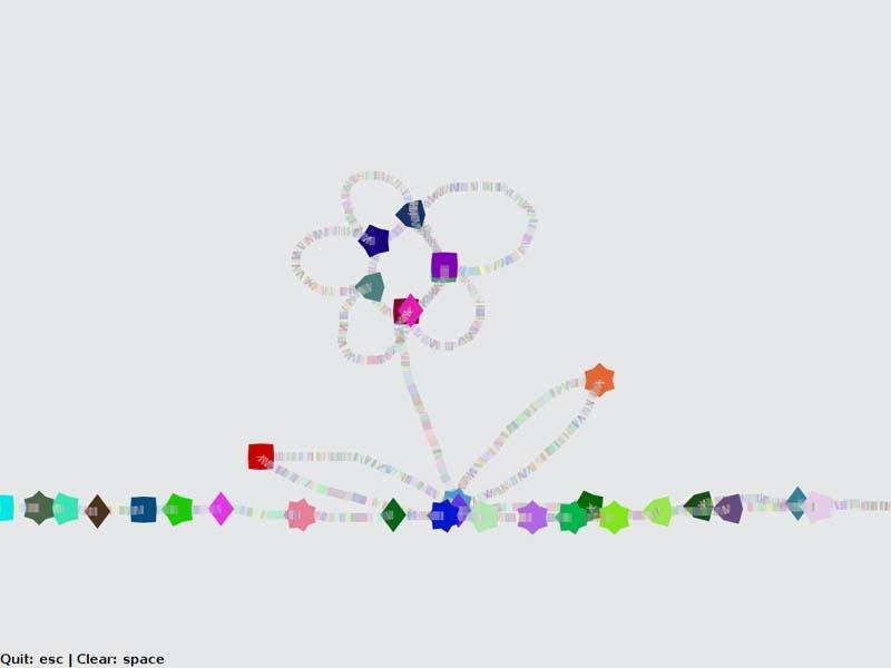 The child uses the mouse to draw coloured dots and lines on the screen.
