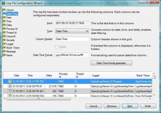 GamutLogViewer© is log file, logfile, viewer that works with Log4J, Log4Net, NLog, and user defined formats including ColdFusion. It supports filtering, searching, highlighting and many other useful features. This is a Windows application.