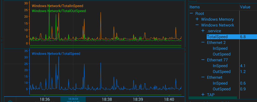 This is a small and simple application that runs as a Windows service to record metrics several times per second. Metrics can be very different. For example, memory usage by a process or ping to a host. The application does not require a DBMS. The data is stored in an open binary format. Data viewing is possible in the form of graphs of the history of changes and in tables of current values. The configuration setting is done without editing the config files - everything is available directly in the UI application.