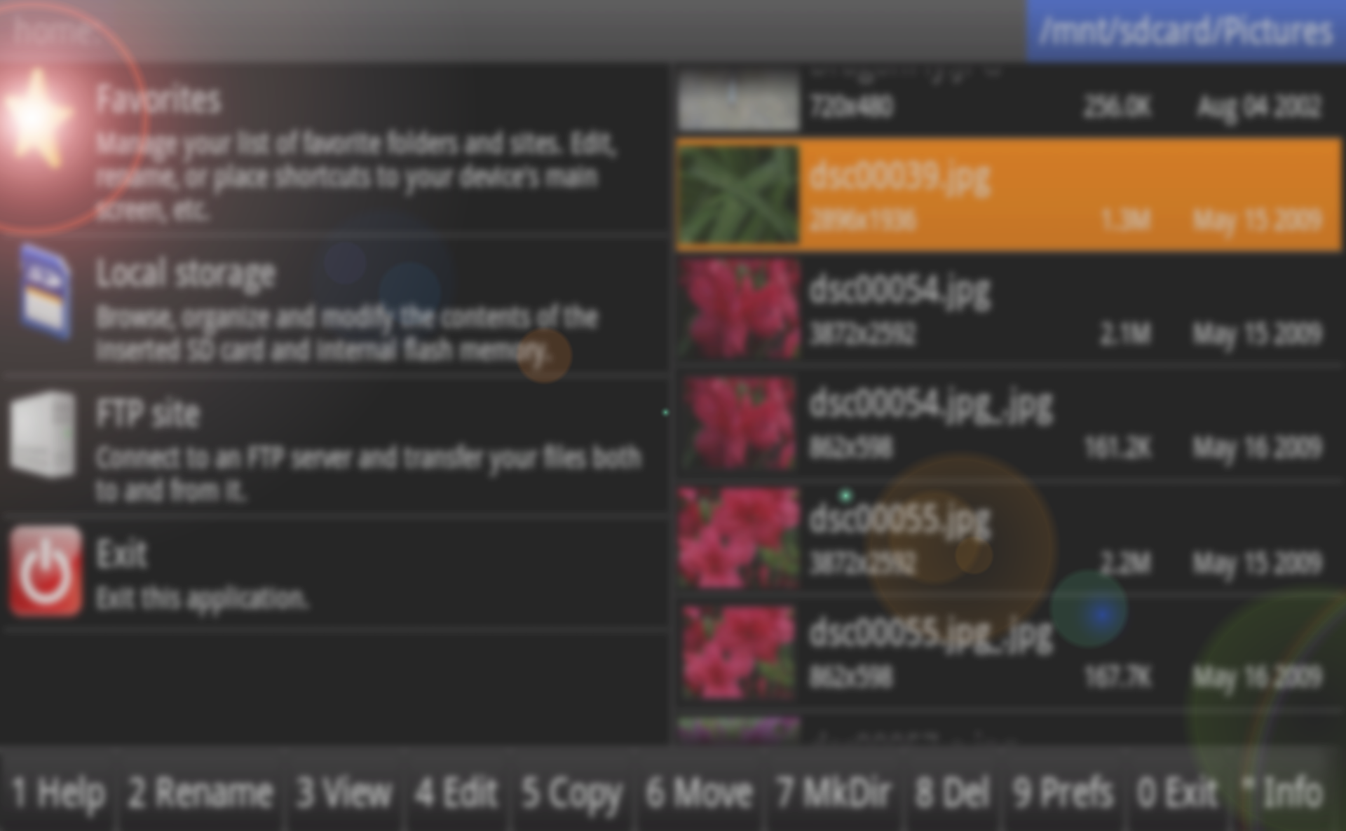 Besides the basic file manager functions you would expect, Ghost Commander lets you transfer files both to and from FTP servers and Windows network shares, plus it can create/extract ZIP archives (enter to a ZIP file like it was a regular folder, then just copy the files).