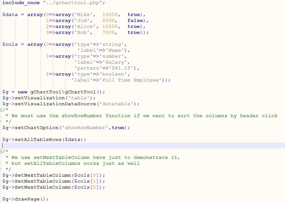 It provides support for all the current Google chart formats including the more complex charts such as bubbles, gauges and scatter charts. In addition, a Google Toolbar can be added to the chart to allow easy export of the data
