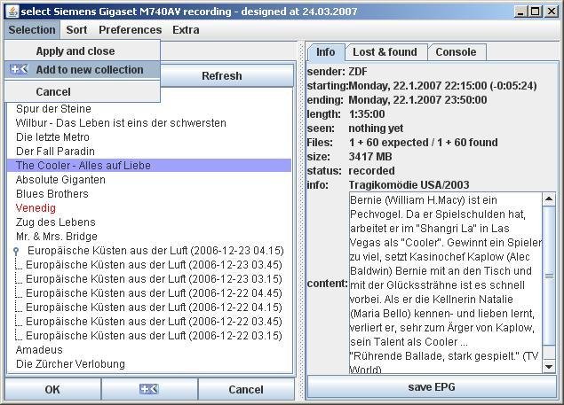 "GDialog" is an add-on for "Project X - DVB demux Tool". It adds a dialog to it's GUI to retrieve and select the video recordings of the Siemens Gigaset M740AV / M750S settop boxes. For details please read the wiki (see 'www' - 'de' only).